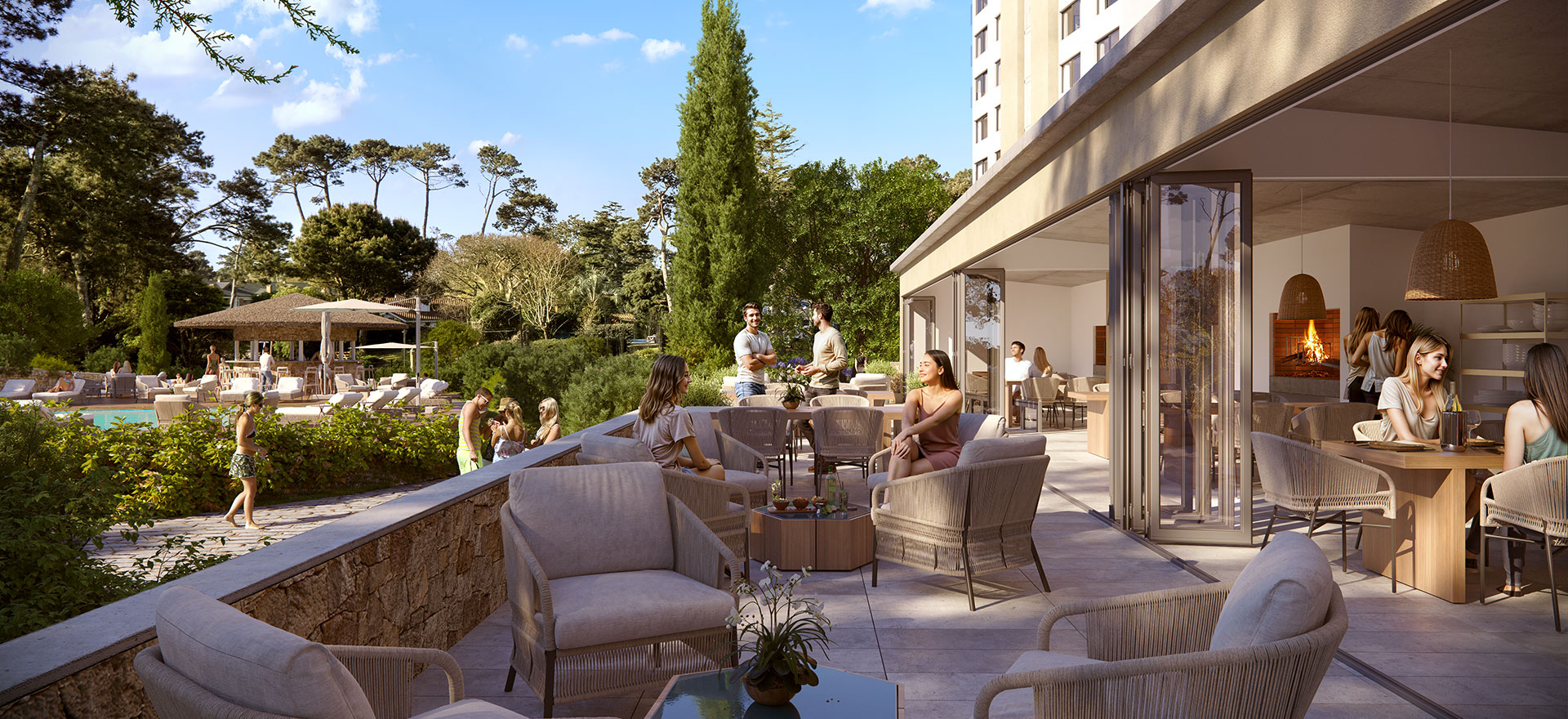 Recepción 24hs – Servicio de video vigilancia CCTV – Wi-Fi – Parque privado – Piscina interior climatizada – Sauna húmedo y seco – Sala de spa e hidromasajes – Gimnasio – Barbacoas de uso común – Kid’s House – Playroom – Sala de Entretenimiento – Salas de reuniones – Lavandería – Piscinas exteriores – Juegos infantiles – Cancha de Padel – Parque de mascotas